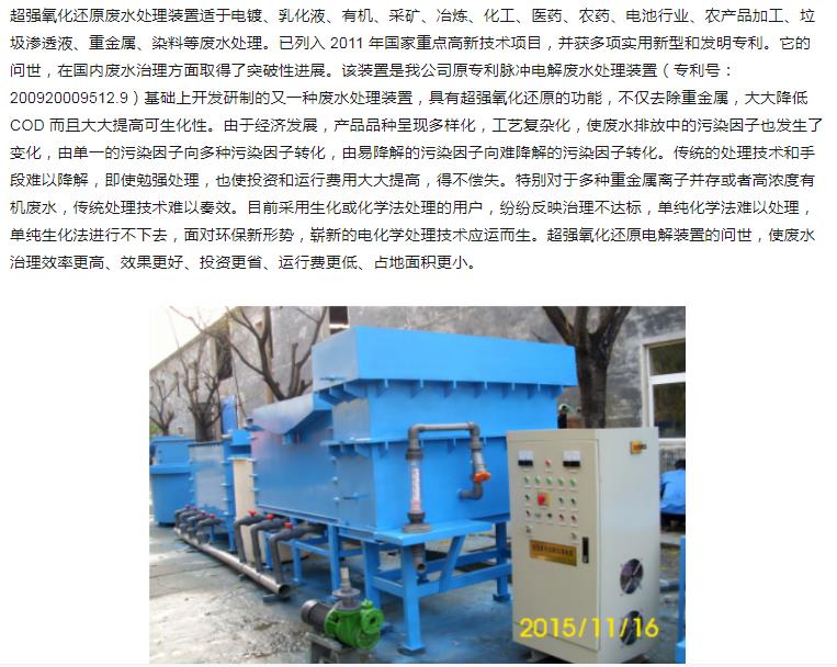 企业家在线发布:超强氧化还原废水处理装置 攻克废水处理难题