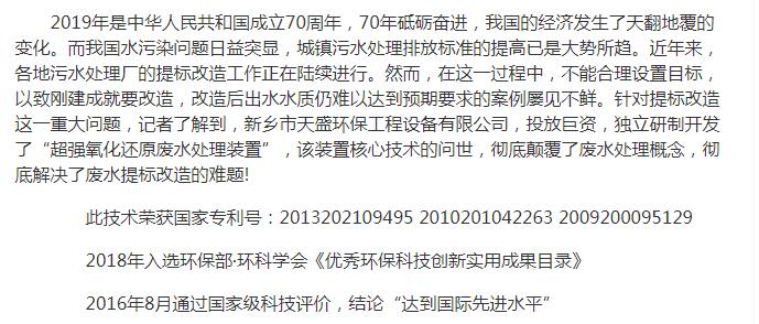 网易刊登:解码科技创新——新乡市天盛环保“超强氧化还原废水处理技术