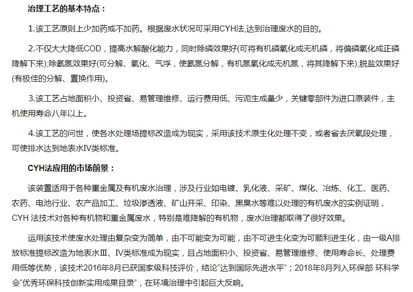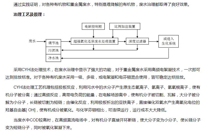 超强氧化还原废水处理装置(CYH法)处理各种有机废水、各种重金属废水