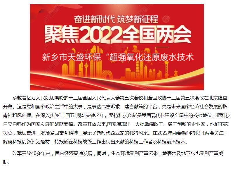 网易刊登:解码科技创新——新乡市天盛环保“超强氧化还原废水处理技术